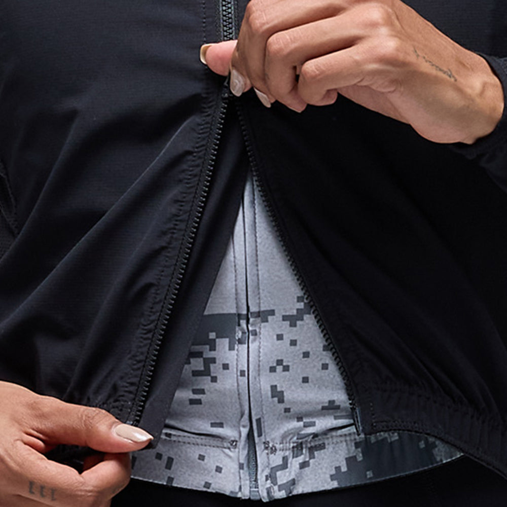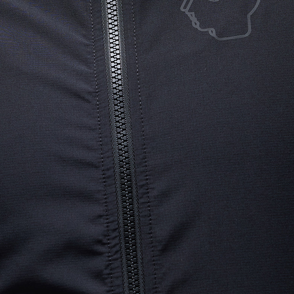 This jacket features a double-directional YKK zipper, giving you total control over airflow and movement—open from the top or bottom to fine-tune ventilation without breaking rhythm. Built from lightweight, high-stretch fabrics for an aerodynamic fit, it delivers protection, flexibility, and speed in one refined layer.
