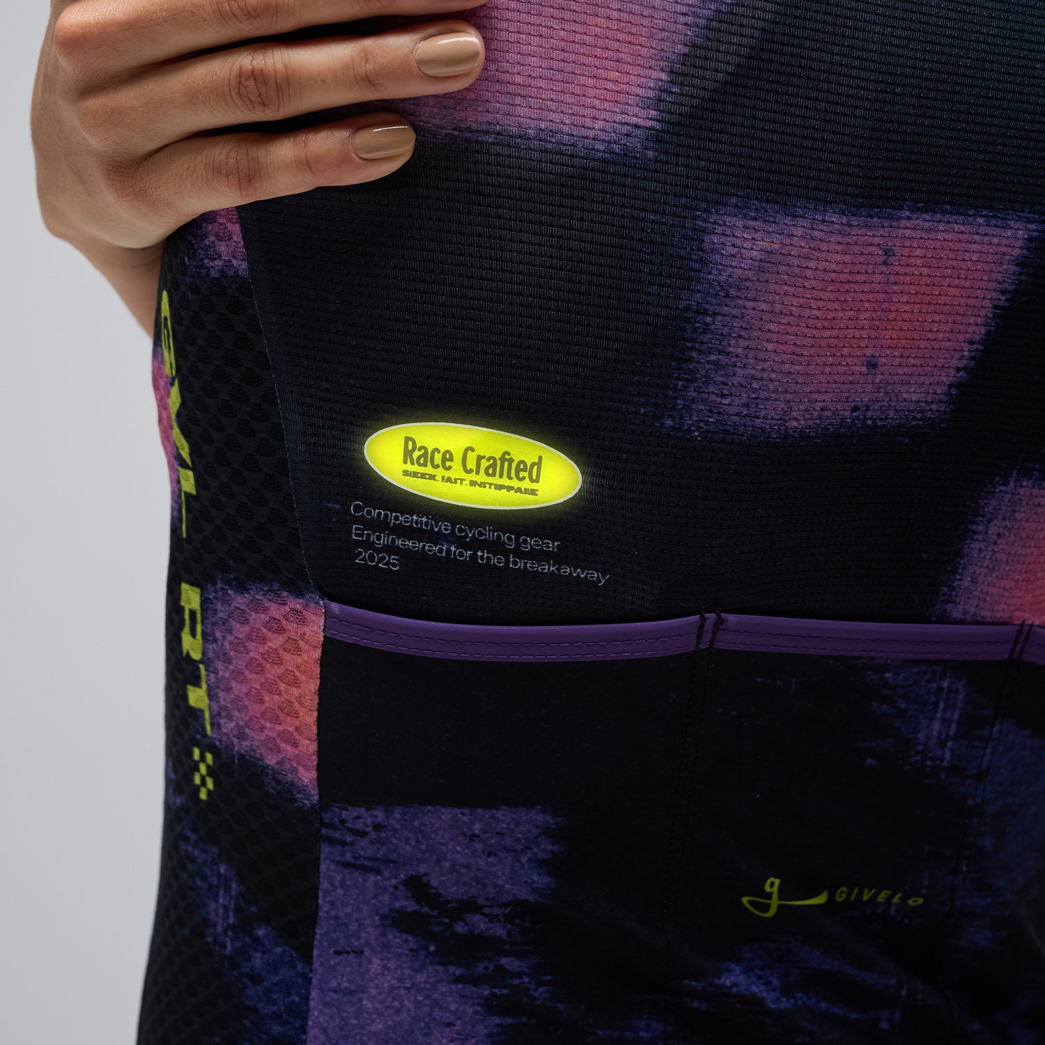 The whole GVL RT collection is made to feel light and race-ready. Thats why we selected multiple ultralight Italian fabrics.