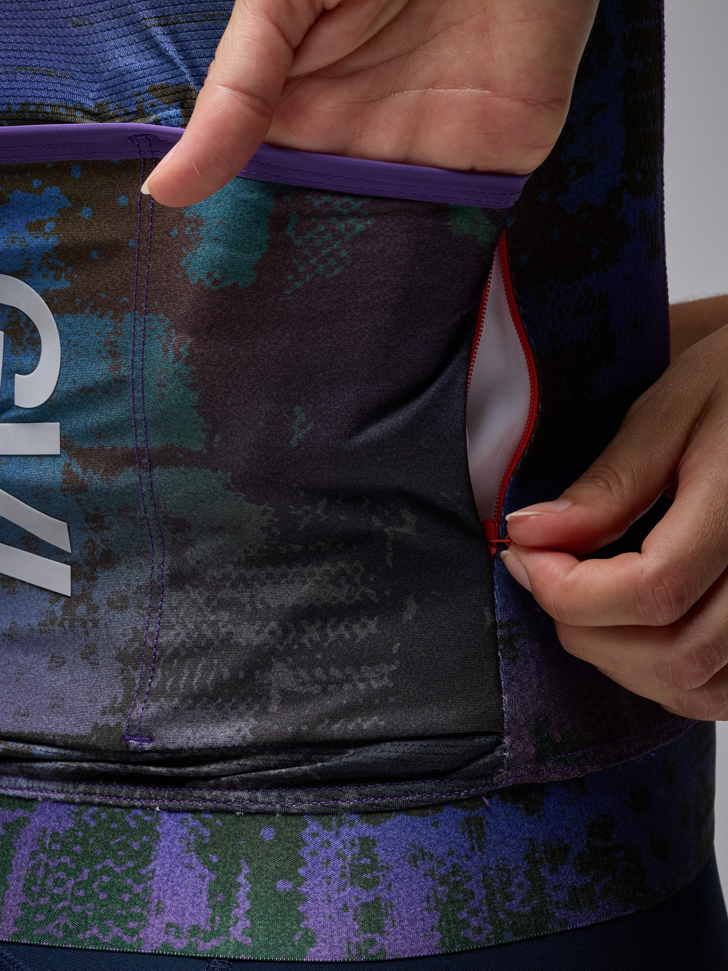 • Tonal cam-lock zipper.
