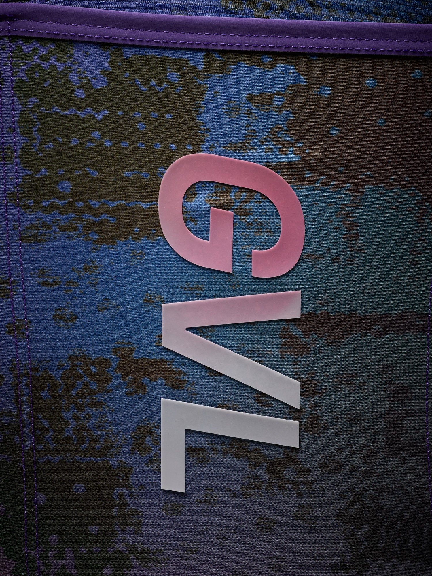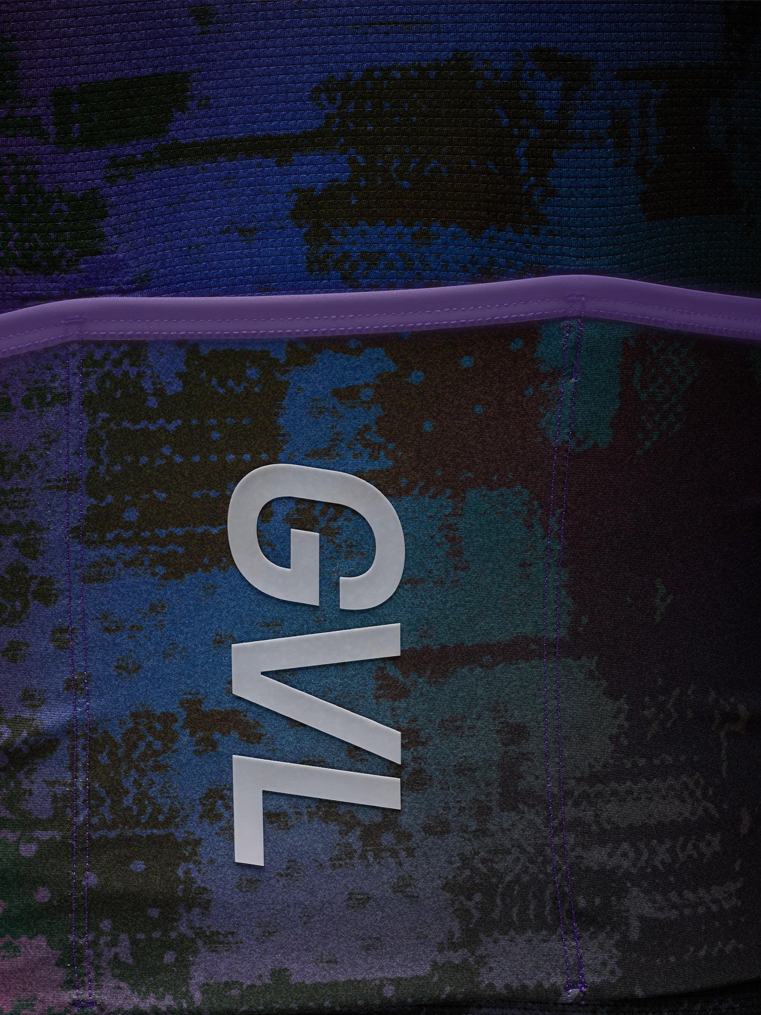 UV reactive logos front and back that change from cream to fuchsia.