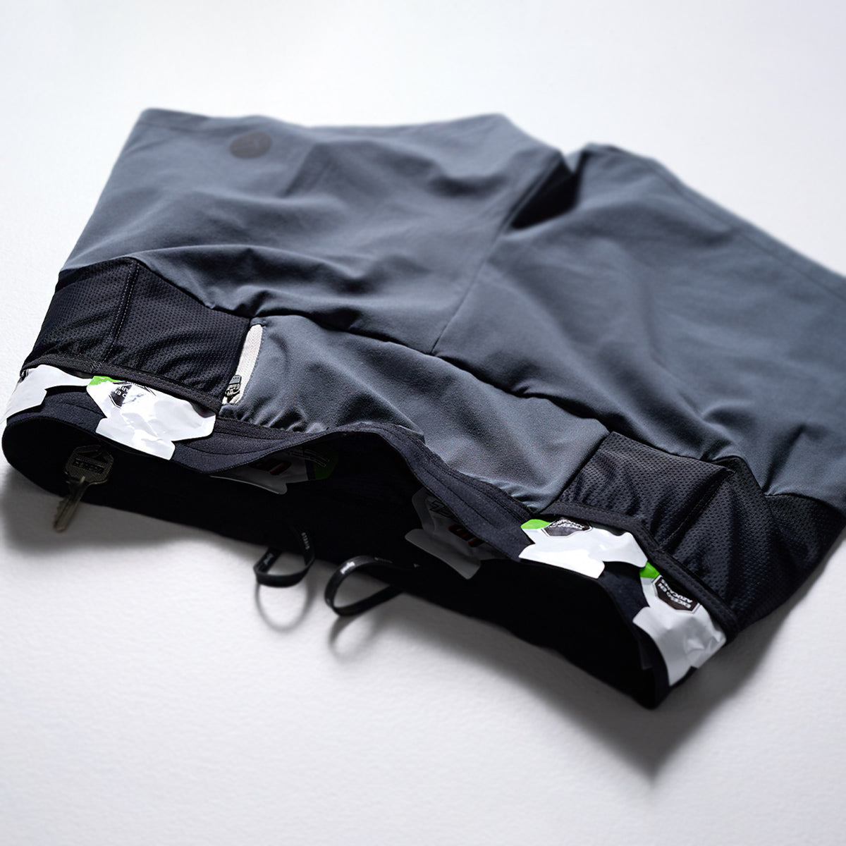 Designed for runners who need to carry more, these shorts feature multiple mesh hip pockets, rear zipper pockets and internal gel pockets allowing easy access to gels, nutrition, and essentials on the move.