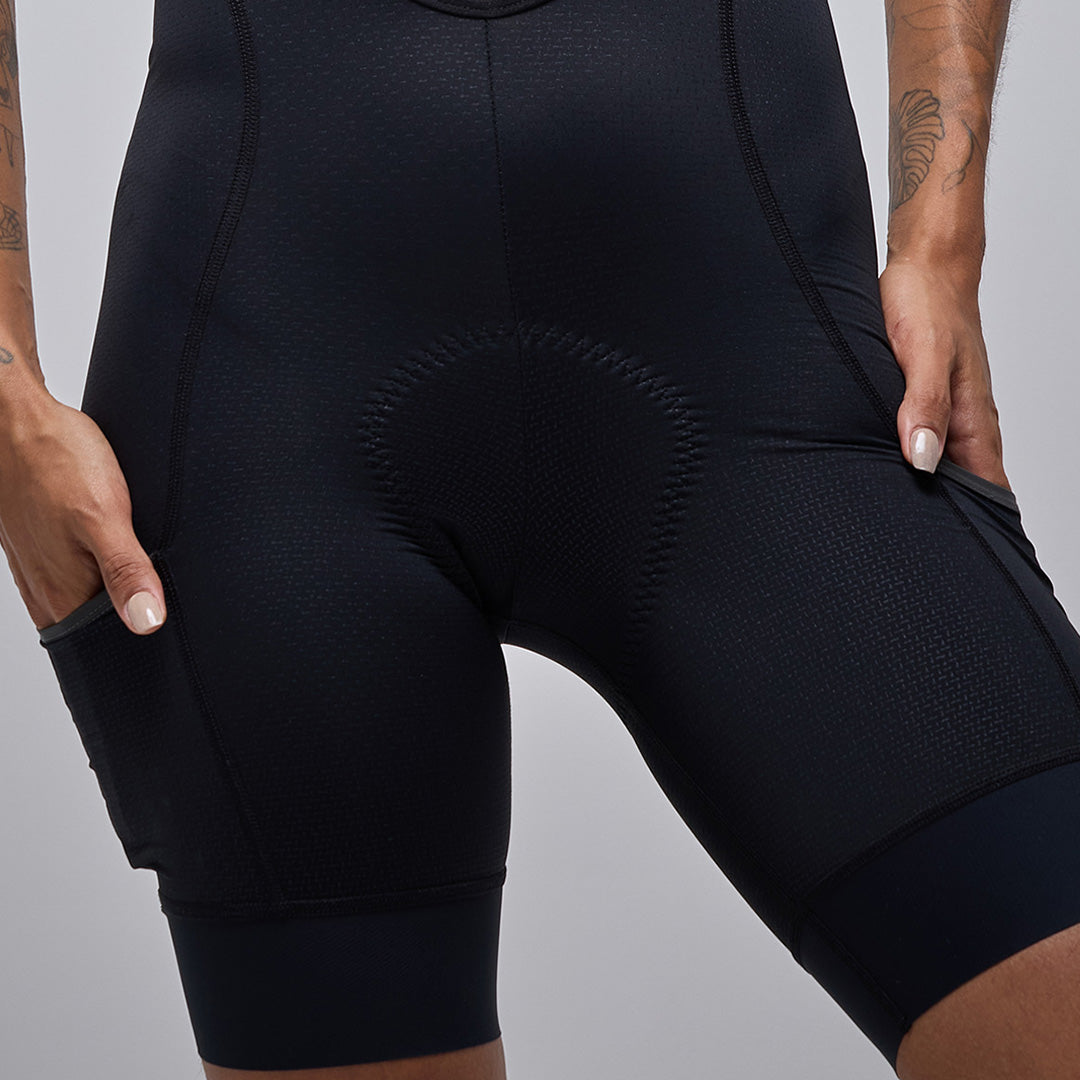 WOMEN’S MC CARGO BIB SHORTS - BLACK